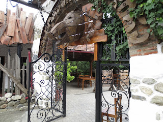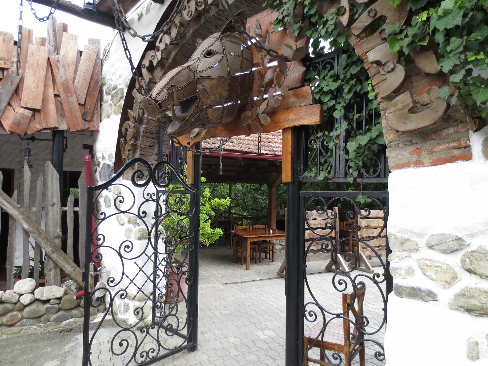 Metal sculpture at entrance to the Monadire restaurant in Tskneti, Georgia.