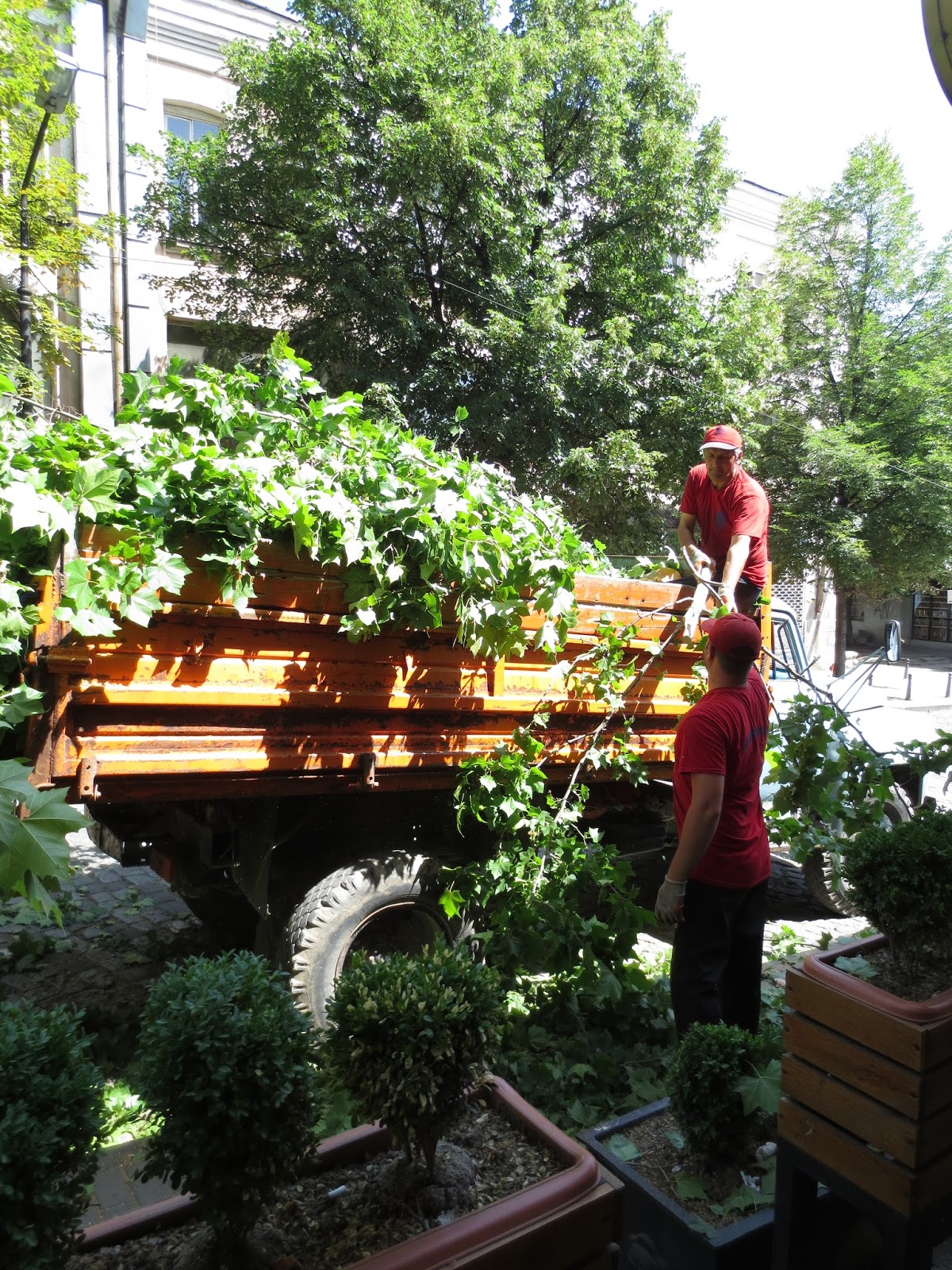 Trees being trimmed on Leselidze Street in Tbilisi.